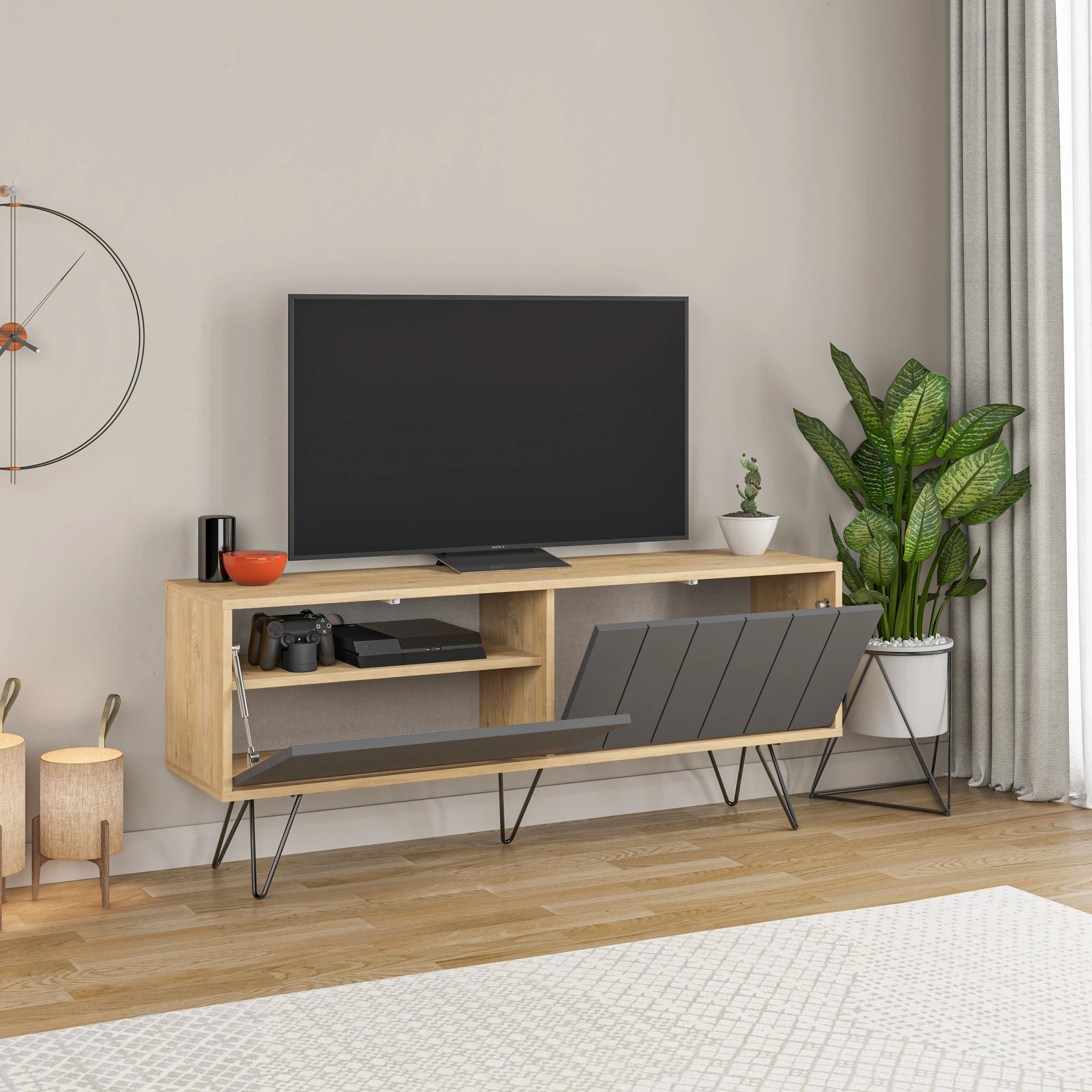 Upgrade your living space with our sleek and functional TV stand, designed to enhance both style and practicality.