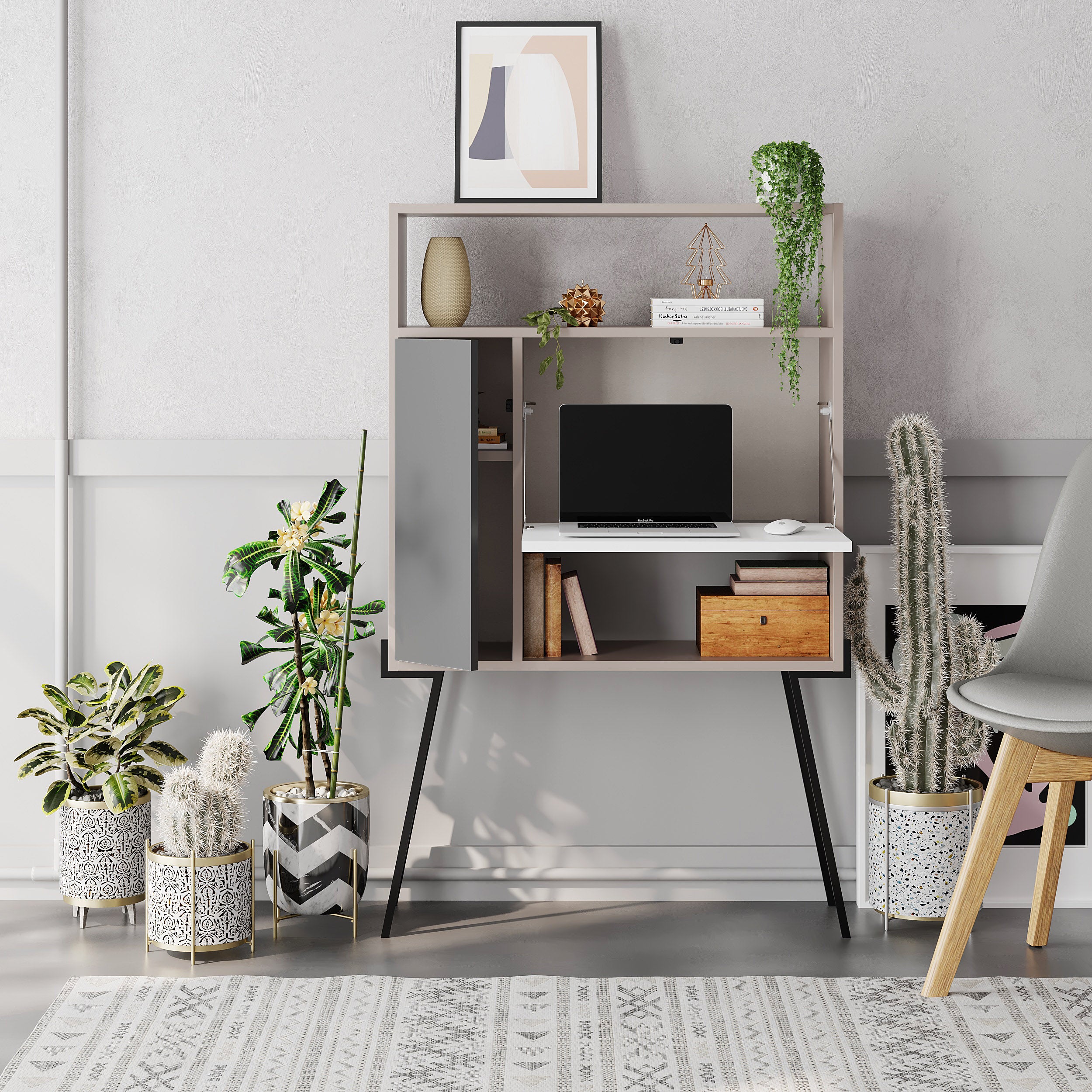 Get ready to unleash your creativity with our unique design desk! This desk is a stylish and useful solution for small spaces. You'll have ample storage with 2 cabinets and 2 open compartments. Plus, you can choose from a variety of eye-catching colors to match your decor. Mounted to the wall using L-shaped iron brackets for reinforced support.